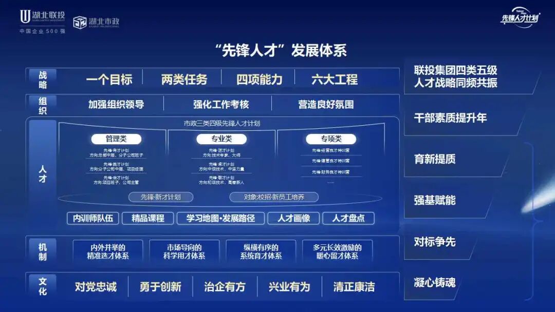 从“先锋人才”人才发展体系、“三类四级”人才梯队的搭建,到市场化管理落地,再到精准化实践推进,湖北市政集团“先锋人才”发展体系已成为企业发展的“强引擎”。未来,公司将持续优化人才培养体系,不断探索人才“选育用留”赋能新路径,为企业高质量发展汇聚更多“先锋力量”,在服务湖北经济社会发展中展现更大担当。
