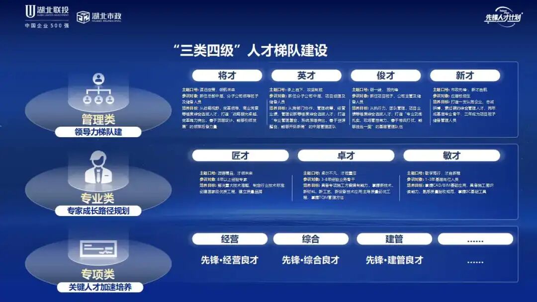 作为省属重点企业湖北联投旗下骨干子公司,湖北市政集团深入贯彻落实“干部素质提升年”战略部署,扎实推进“人才强企”战略,系统构建“先锋人才”发展体系,通过“三类四级”体系化梯队建设、市场化机制、精准化实践打造高素质专业化干部人才队伍,为企业转型升级与可持续发展注入强劲动力,促进人才发展与企业战略同频共振。