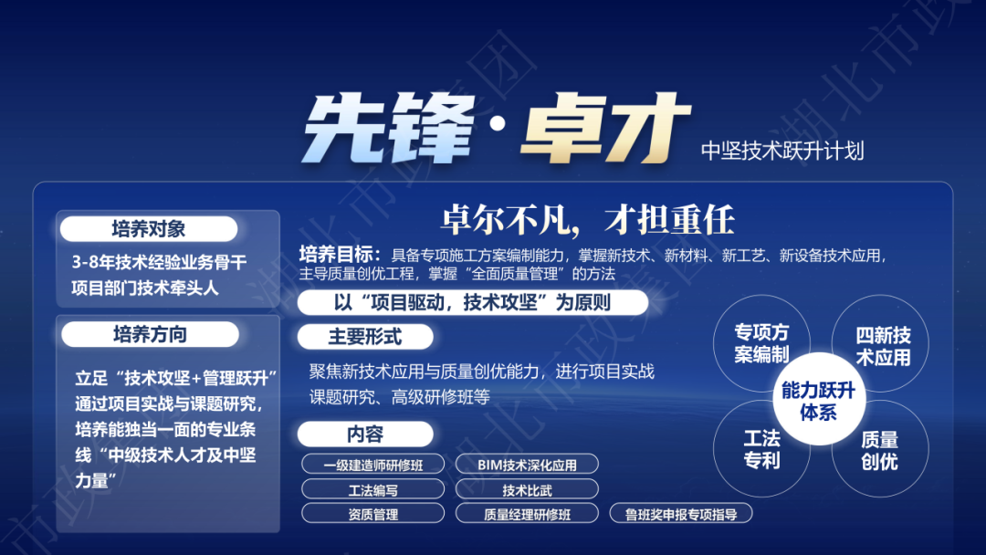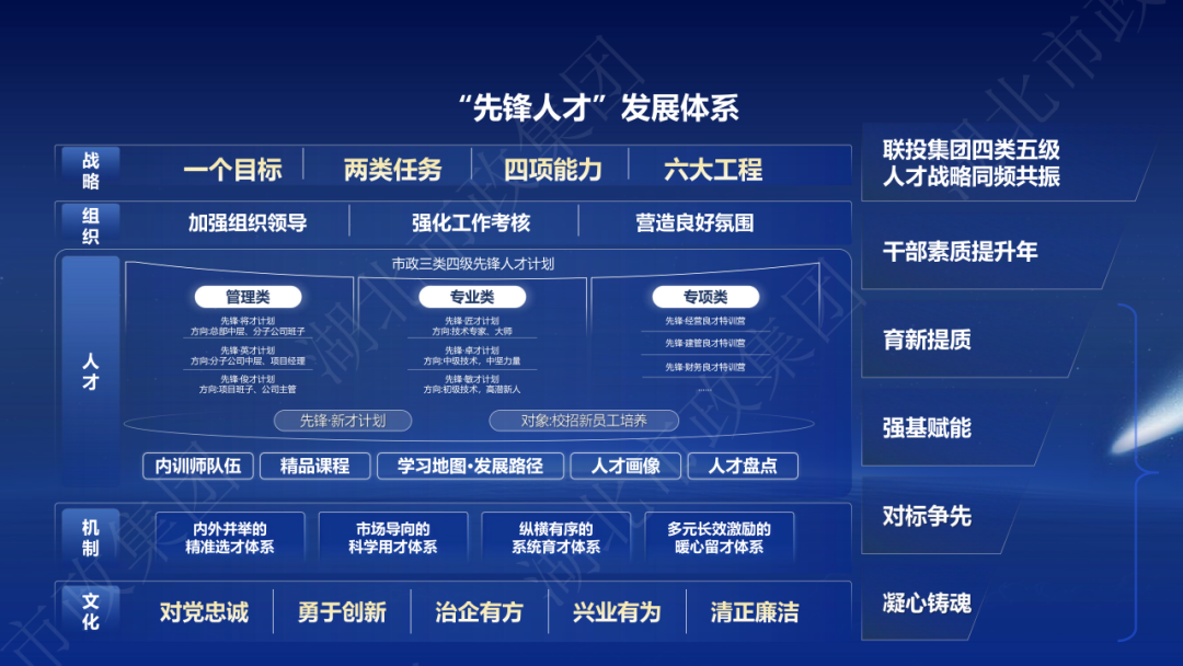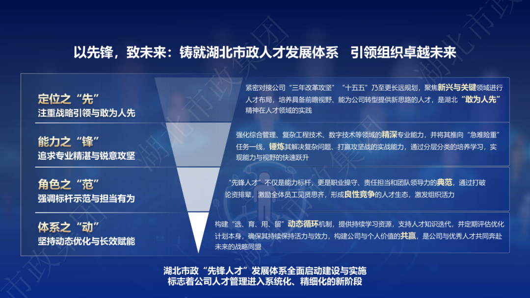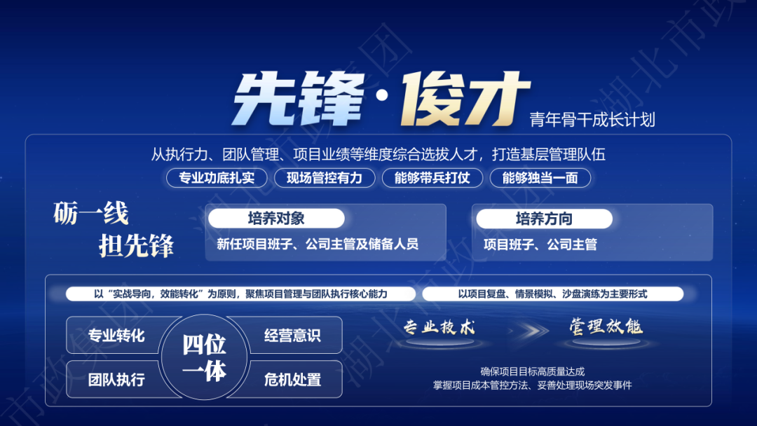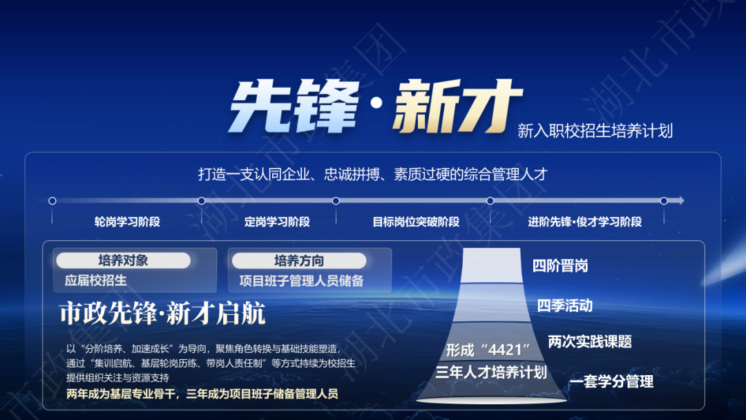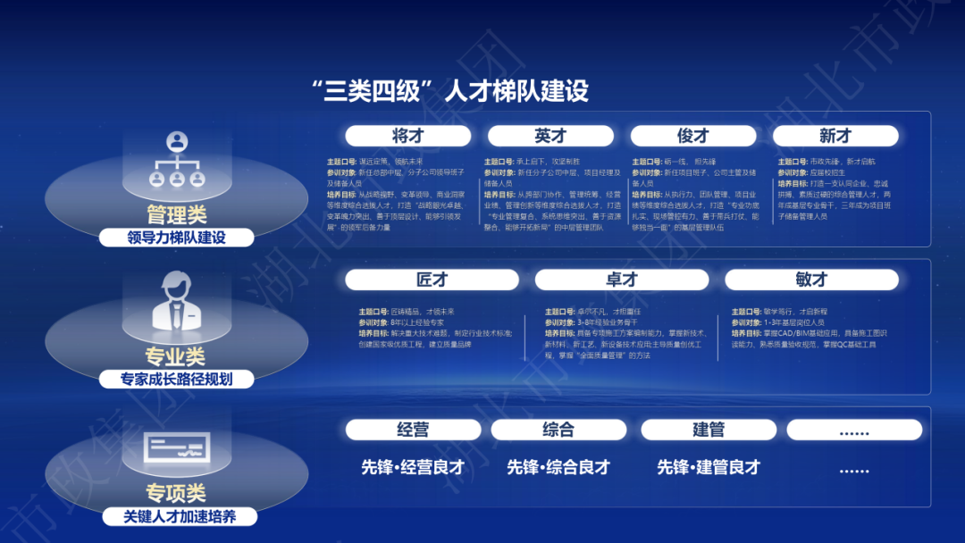 12月29日,湖北市政集团正式推出“先锋人才”发展体系,系统性构建“三类四级”人才梯队,全面覆盖从校招新人到高管后备的成长路径。这不仅是一份人才培育蓝图,更是公司奋力打造“省内标杆、全国一流”企业的战略支撑。无论你是即将启航的“新才”,还是肩负重任的“将才”,都能在这里找到清晰的成长阶梯与赋能通道。