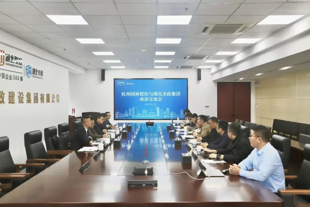 杭州市园林绿化股份有限公司执行副总裁傅磊,战略中心副总裁陈振华等相关负责人;湖北建投咨询公司党总支委员、副总经理周俊,投资研究院部长喻凯;湖北市政集团园林景观事业部、经营开发中心、工程建设公司相关负责人参加座谈。