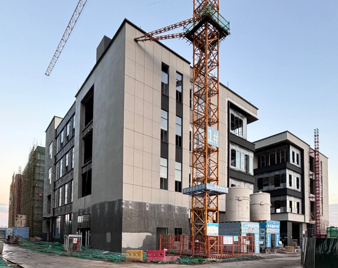 东湖高新光谷生物医药研发生产基地1期项目,合同总额15297.33万元,分期建设。1.1期项目建筑面积40806.29㎡,工期305天,由2栋5层厂房(其中1栋含一层地下室),4栋4层厂房,1栋二层物业用房,1栋1层设备用房(含一层地下室)组成。9栋单体建筑砌筑工程和装饰装修工程稳步推进。目前,3栋楼外墙装饰已完工、2栋楼抹灰工程进入收尾阶段、4栋楼砌筑工程即将收官。