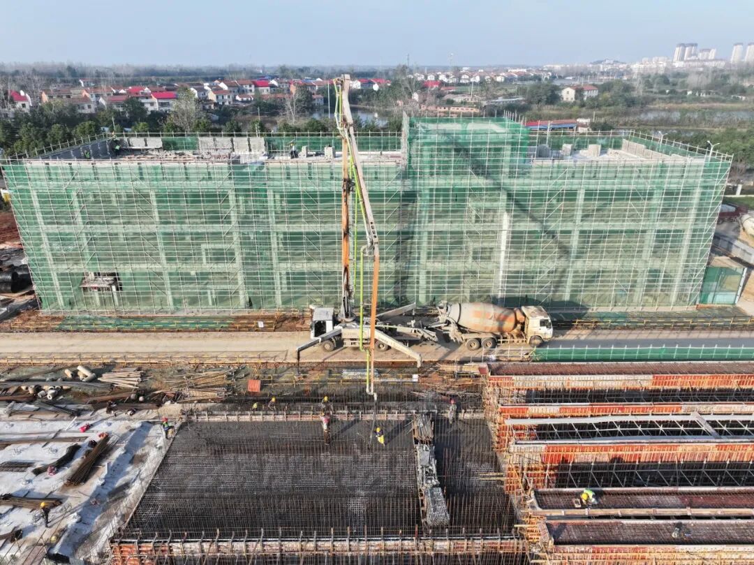 项目11月施工稳步推进,多项关键节点高效落地。主体结构方面,机修间基础地坪、门卫室及加药间主体均已全部完工;综合楼主体封顶,屋面女儿墙施工正有序开展。配套设施与深基坑工程同步攻坚,污泥浓缩池基础垫层施工完成,脱水车间基槽开挖全部结束,即将进入基础钢筋绑扎阶段。深基坑工程作为施工重难点,项目团队克服地质条件复杂、施工空间受限等挑战,通过优化支护方案保障施工安全,目前吸水井底板结构已顺利完工,送水泵房及清水池基坑开挖与支护完成60%。