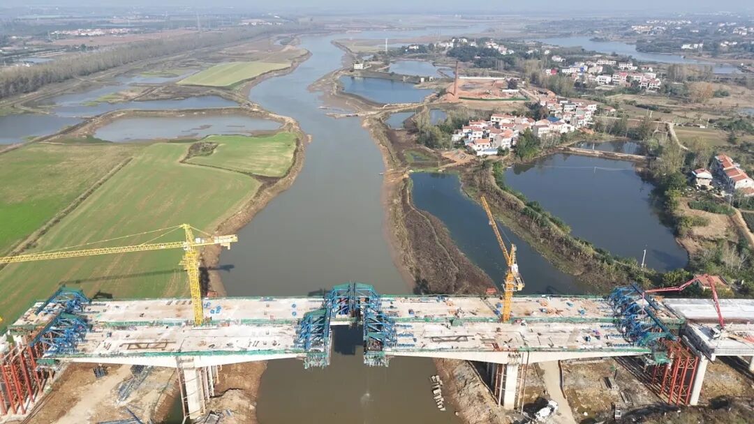 汉川老荷沙项目桥梁主体架构逐步成型