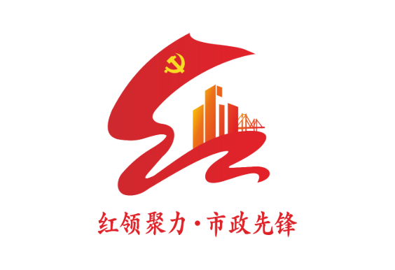 巧妙组合成汉字“红”,突出红色主基调,彰显党组织在市政发展中的引领作用,融入市政建筑、桥梁元素剪影,体现了市政建设的行业属性。